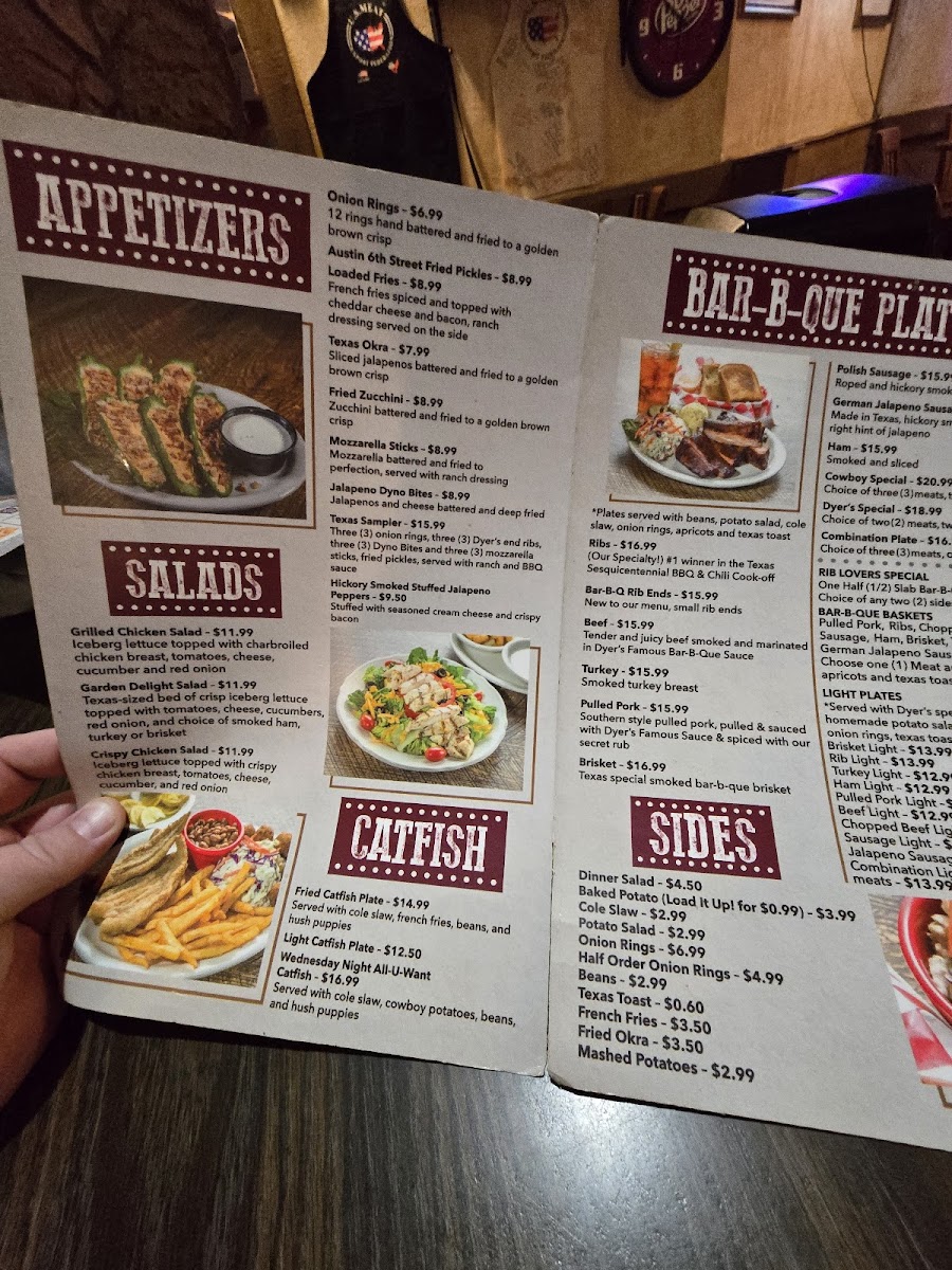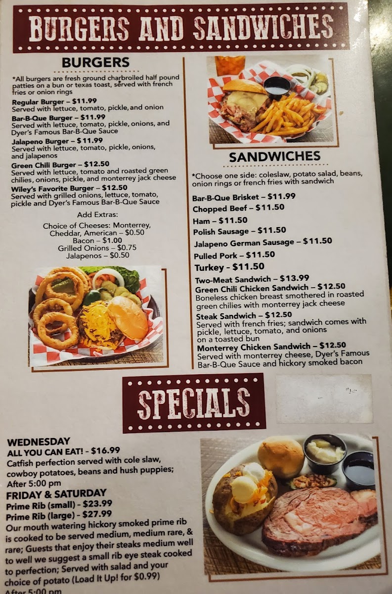 With rave reviews highlighting the tender brisket, speedy service, and warm atmosphere, Dyer's Bar-B-Que promises a satisfying dining experience that will have you coming back for more!